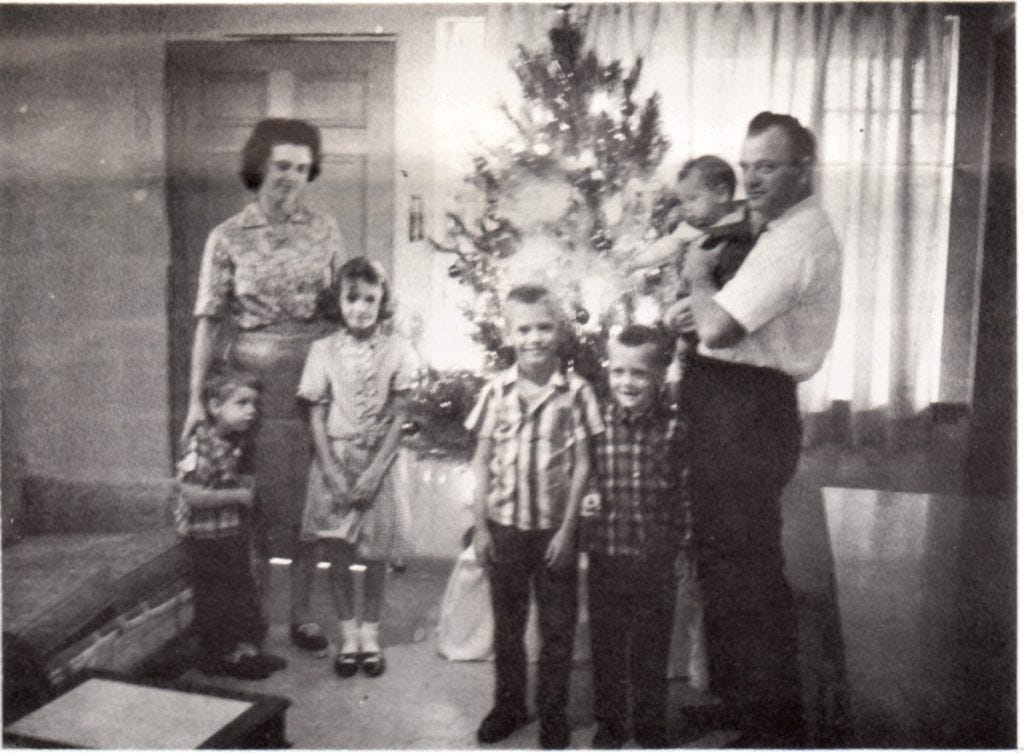 Post-storm Christmas. Stanley Canepa, long-time Buyer for the Boy Scout department, posing with his family in their Chalmette home, December, 1965. Like many Maison Blanche families, the Canepas repaired their homes and life went on. (The author had the privilege of working for Mr. Canepa when he was Area Manager for Men’s wear at the Clearview store in 1979.) (NOPL)